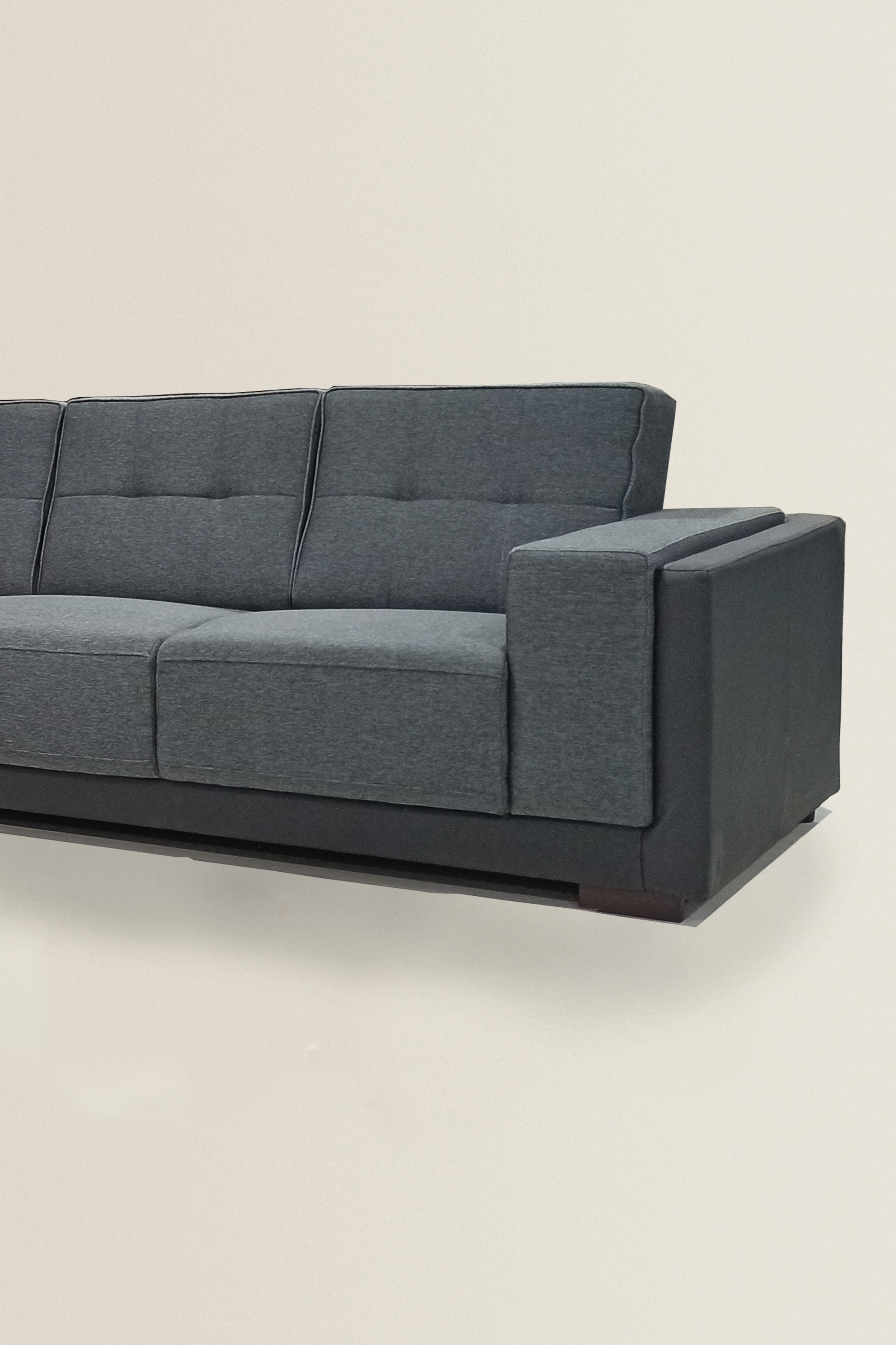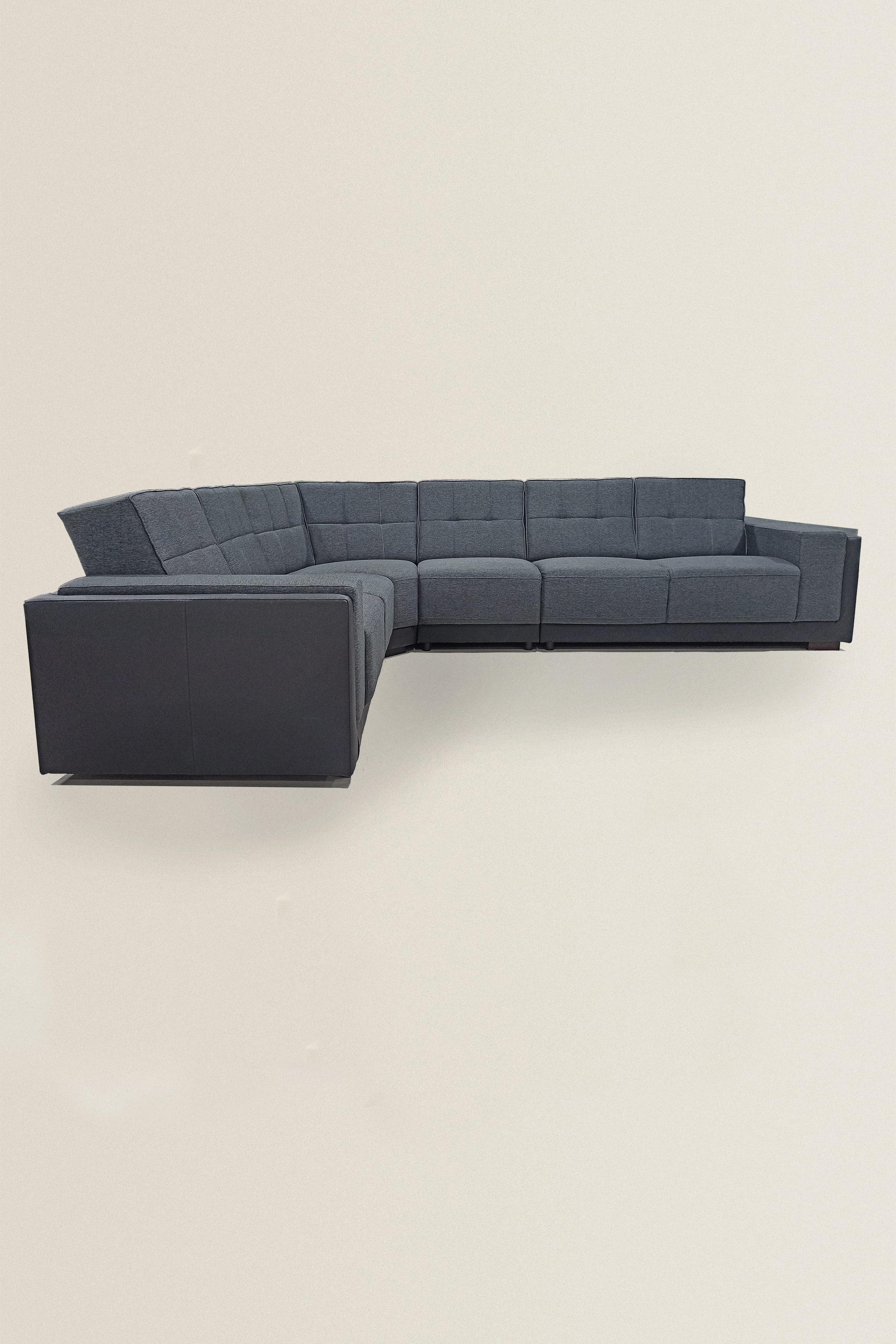 De hoekbank wordt in losse elementen geleverd. Dit model bestaat uit 4 delen: 2 tweezitters met armleuning, eenzitter en een hoek element. Op elk element zitten speciale bevestigingshaken zodat uw bank gemakkelijk aan elkaar geklikt kan worden. De eenzitter kan aan beide kanten gemonteerd worden.