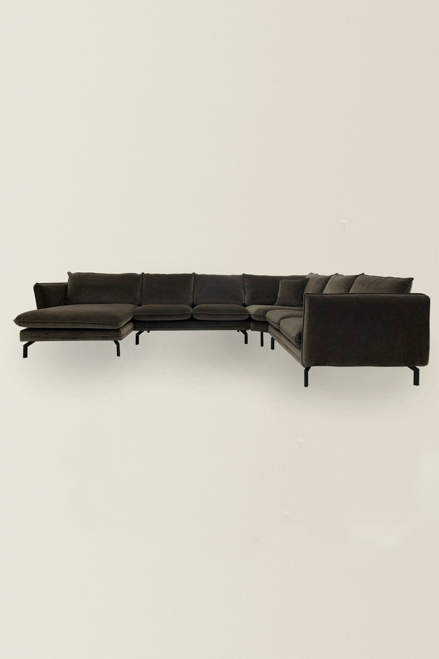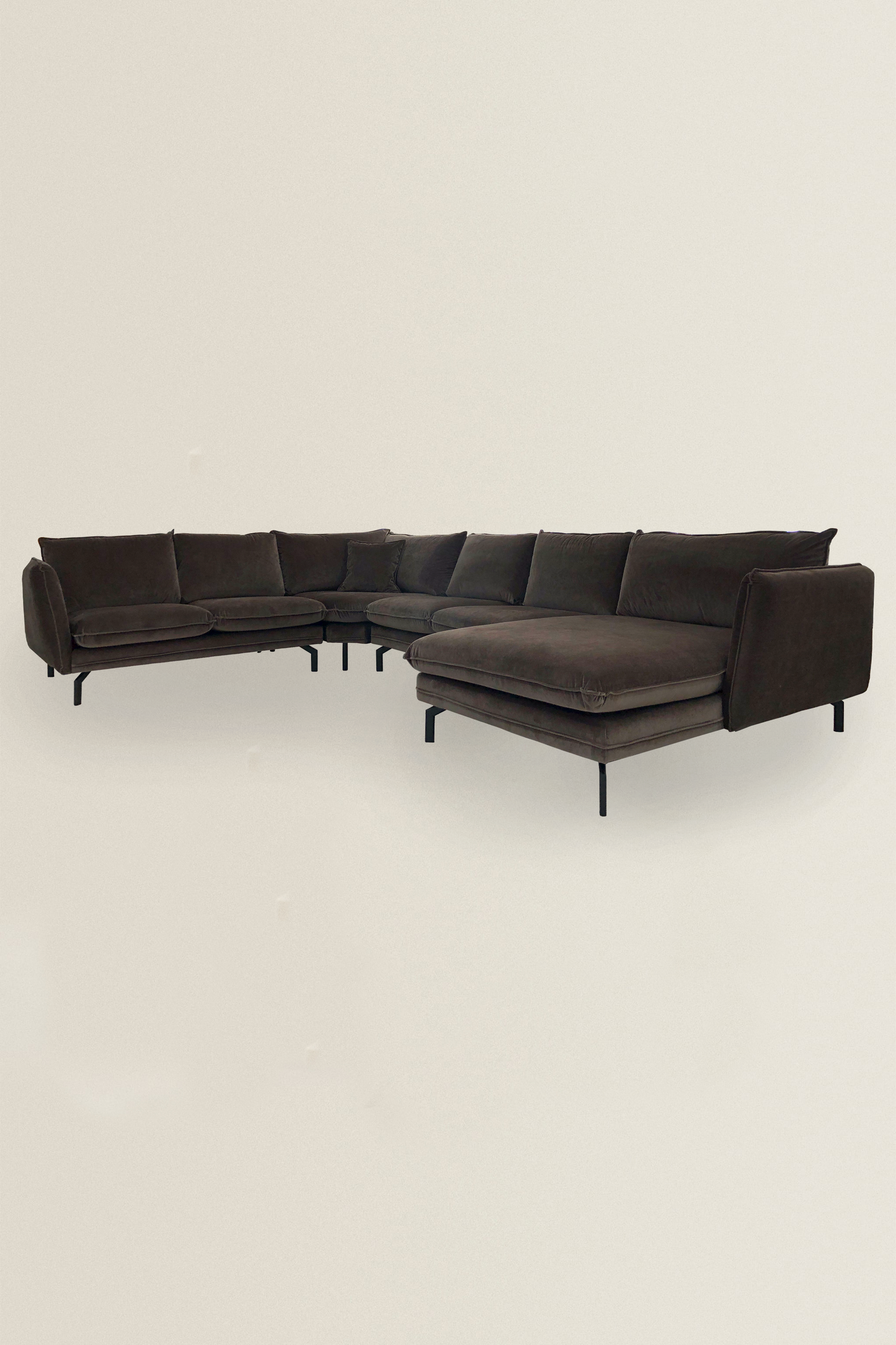 U-Bank Ruud is een ruime hoekbank met een warme, tijdloze en moderne design. Mede door de prachtige velvet materiaal in combinatie met de zwarte stalen poten krijgt de bank een luxe uitstraling. Alle zitelementen, zijn tevens voorzien van grote stevige zitkussens met klittenband. De bank beschikt over losse rug- en zitkussens die losgeritst kunnen worden. De bekleding bestaat uit een hoogwaardig Genova 101 velvet in de kleur donker taupe.